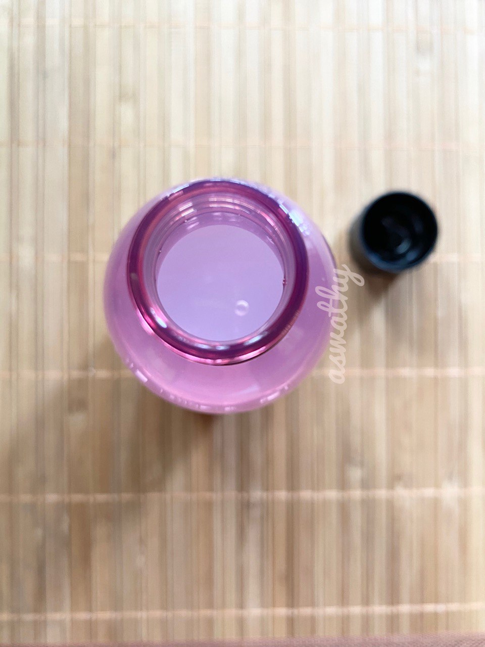 This alcohol-free toner enriched with Vitamin E, wheatgerm oil, and soya oil is water-like (the bottle is pink-tinted, not the toner). It does not have a noticeable scent. One only needs 10-12 drops of the toner to cover the whole face and neck. Therefore, this will last a long time.